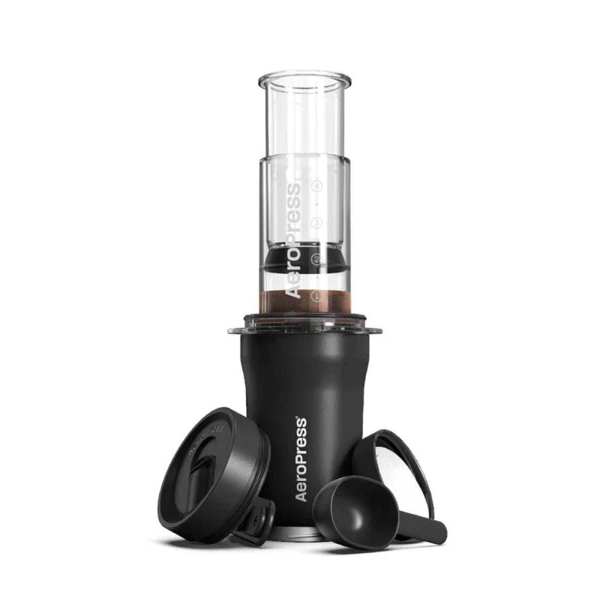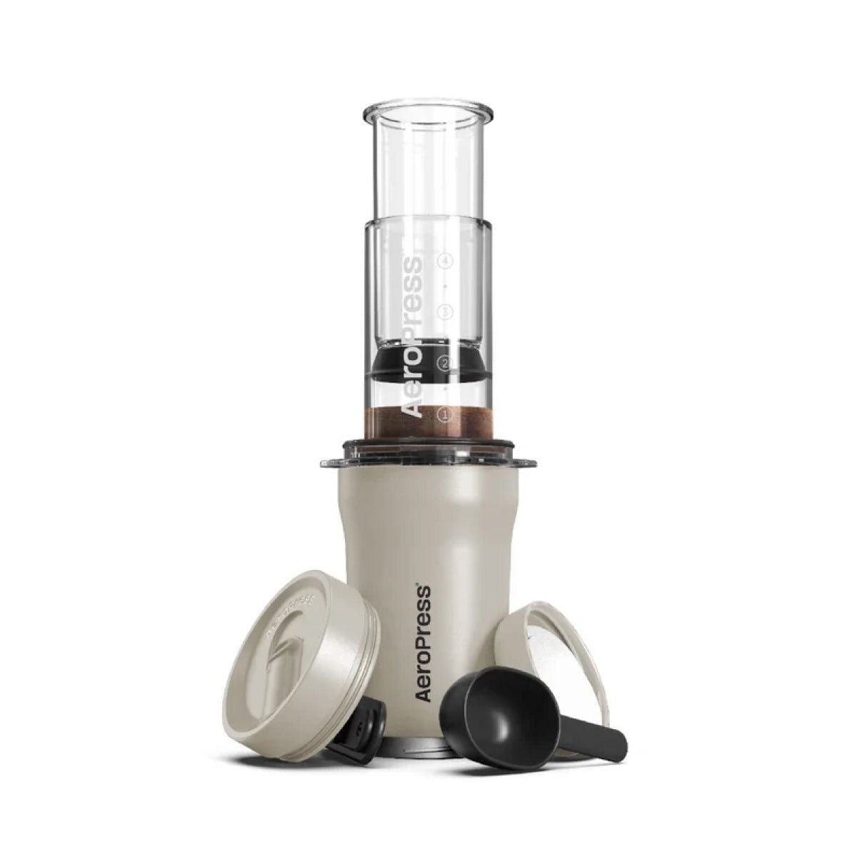 Take your craft coffee on the go with the AeroPress Go Plus Travel Coffee Maker. Designed after the AeroPress Go, the Go Plus swaps the lightweight cup for an insulated steel travel tumbler—perfect for bringing your favorite cup of coffee wherever you go. Double-walled and vacuum-sealed; the included travel mug keeps coffee hot for hours and comes with a leak-resistant lid and extra filter storage at the base of the cup. Available in black or cream color options, the AeroPress Go Plus is all you need to make and take your coffee on the go.