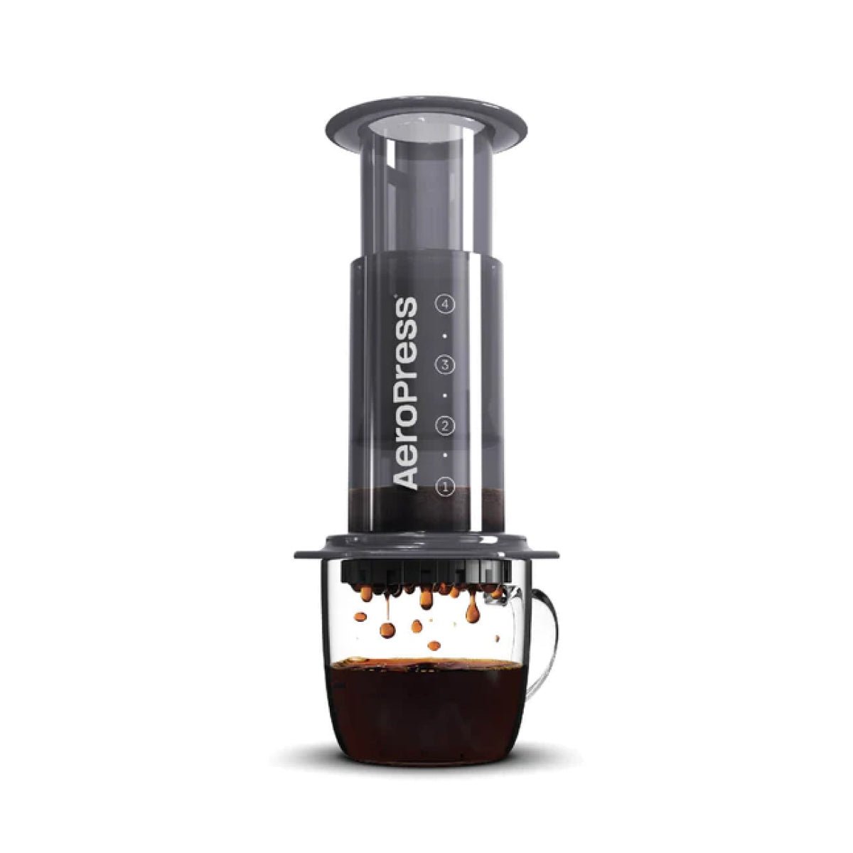 What makes it so different? Rather than pouring hot water over a bed of grounds to over-extract at the center and under-extract around the edge–the AeroPress utilizes the full submersion method, and separates extracted coffee through high-pressure processing micro-filters to create a grit free cup unlike any other.