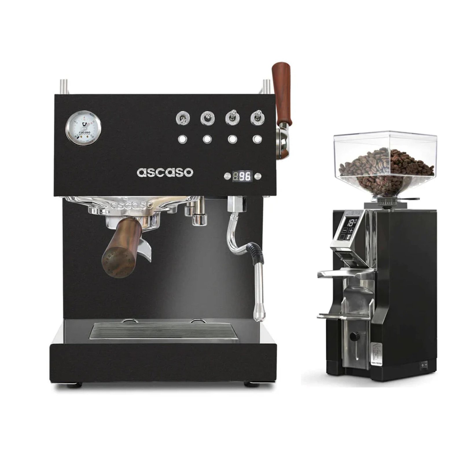 Built with top-of-the-line espresso assistance in mind, the Ascaso Steel Duo Plus and Eureka Mignon Libra Espresso Bundle features weight-based dosing and volumetric shot programming for more consistent and convenient espresso. The Ascaso Steel Duo Plus features espresso optimizations like a dual PID-controlled thermoblock layout, programmable preinfusion, and an adjustable OPV. The Eureka Mignon Libra builds a load cell into the portafilter hook, alowing for weight based dosing and gram-accurate grinding. Other bundled benefits; like a bevy of basket and portafilter options, an included dosing funnel, and walnut furniture makes the most of your home coffee setup.