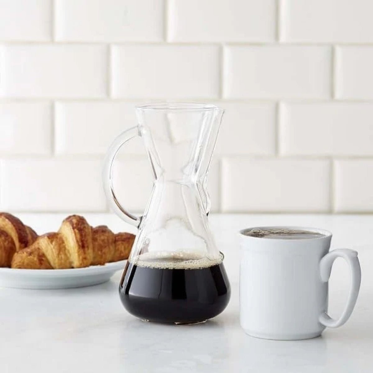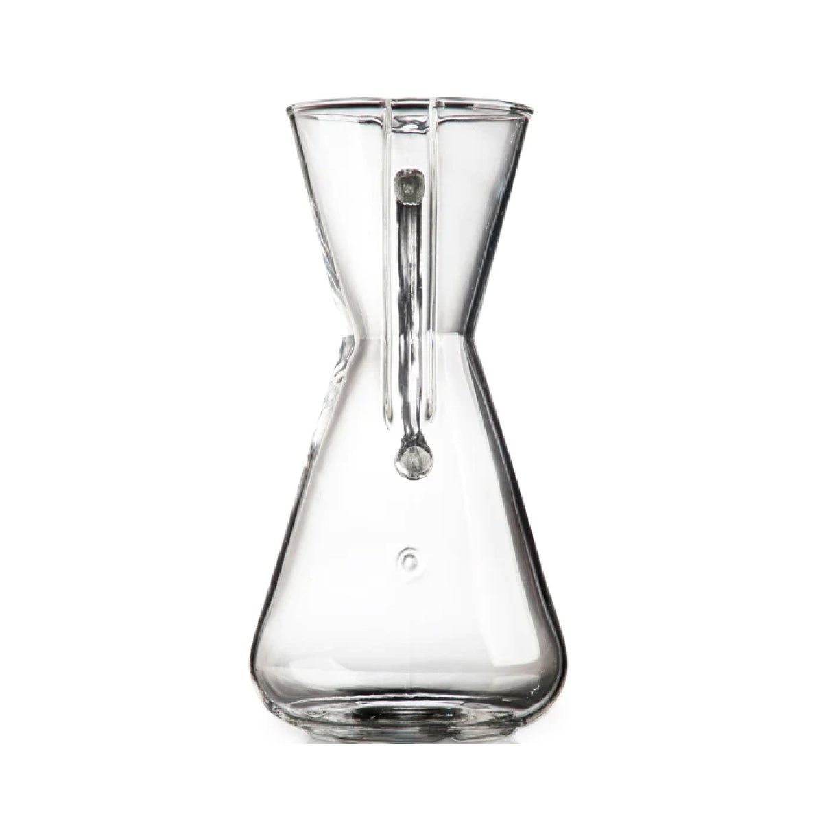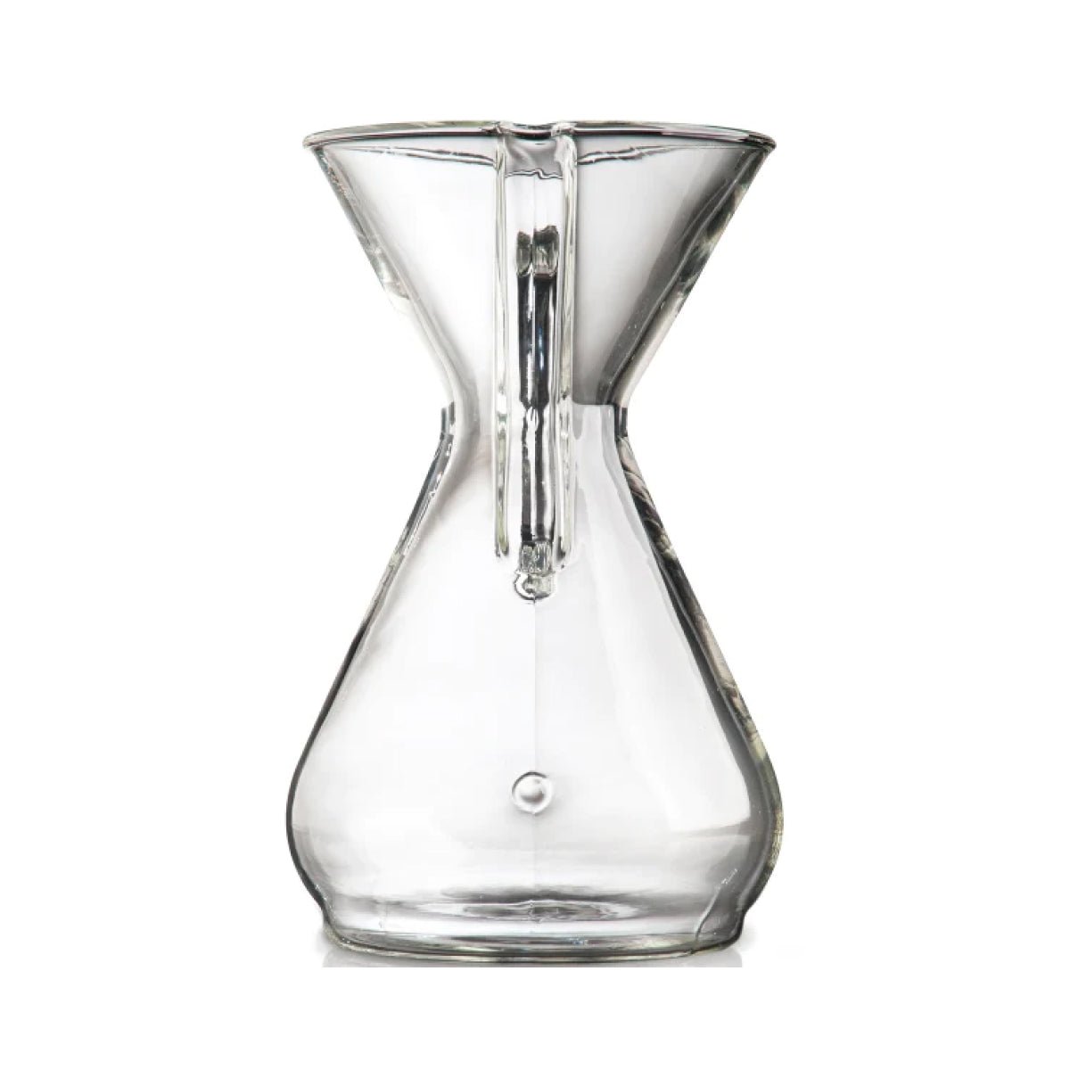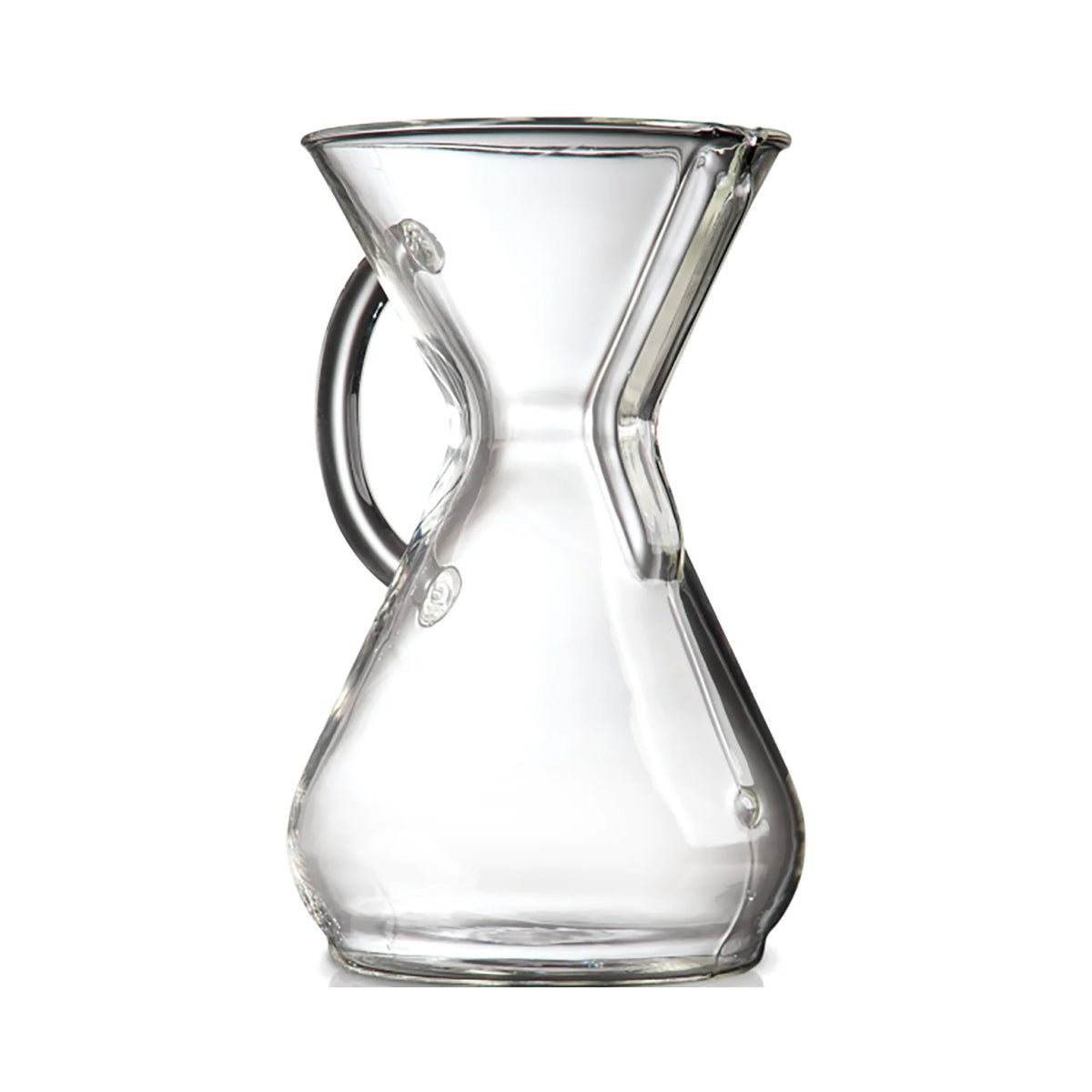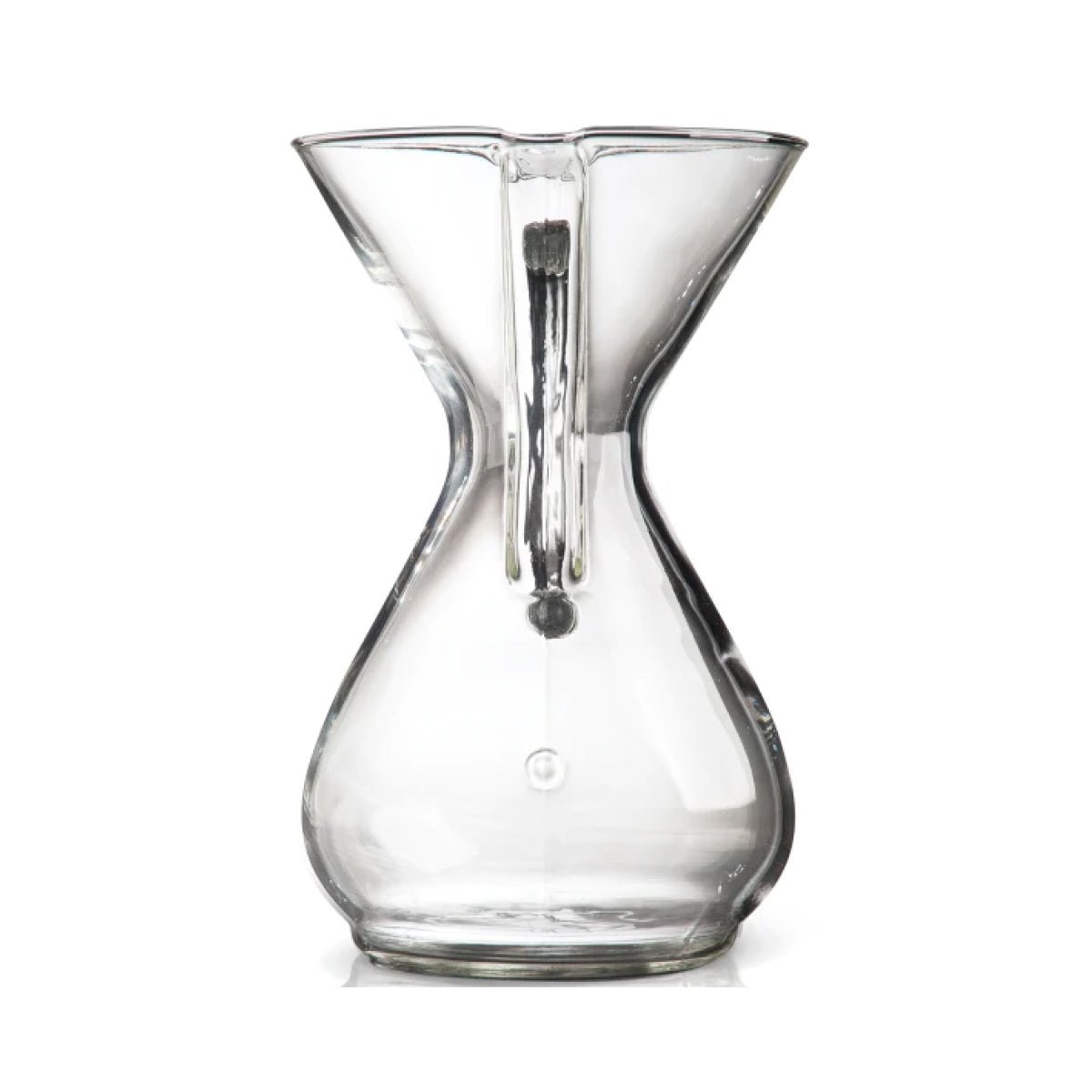 Designed with the same curvy sass and sustainable attributes as the Chemex Classic, but featuring the added borosilicate arm which gives the Chemex Glass Handle Series its name. Brew anywhere between 3 and 10 cups of coffee and watch as the Chemex Special Filter absorbs all excess oils, leaving behind a clean stream of coffee brimming with all the aromatic subtleties that are so often lost in standard brewing. This design dates all the way back to 1941, first created by a chemist working to patent his inventive design after a culmination of studied methods and tested concepts arranged to chemically produce the best flavors possible in coffee. True to his success, it’s no wonder the Chemex is one of the most highly recommended brew methods around!