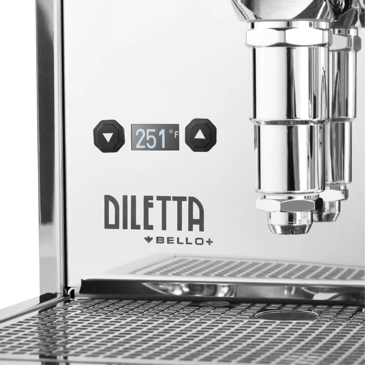 Bring a touch of technology to your classic espresso setup with the Diletta Bello+ Espresso Machine. Following the popularity of the original Bello, the Bello+ adds PID temperature control, an integrated shot timer, programmable pre-infusion, and a low-power eco mode—all with an aim to improve your shot consistency and overall machine usability. A PID controller puts instant access to temperature changes at your fingertips, and doubles as a shot timer when you lift the brew lever. The logic board behind the scenes also opens up programming options for pre-infusion (up to 10 seconds), and a new sub-boiling eco-mode that still seeks savings on energy consumption while offering vastly faster recovery times for your next shot. These upgraded features do not come at the expense of design, as the Bello+ retains the handcrafted steel build quality and simple manual controls of the Diletta Bello.