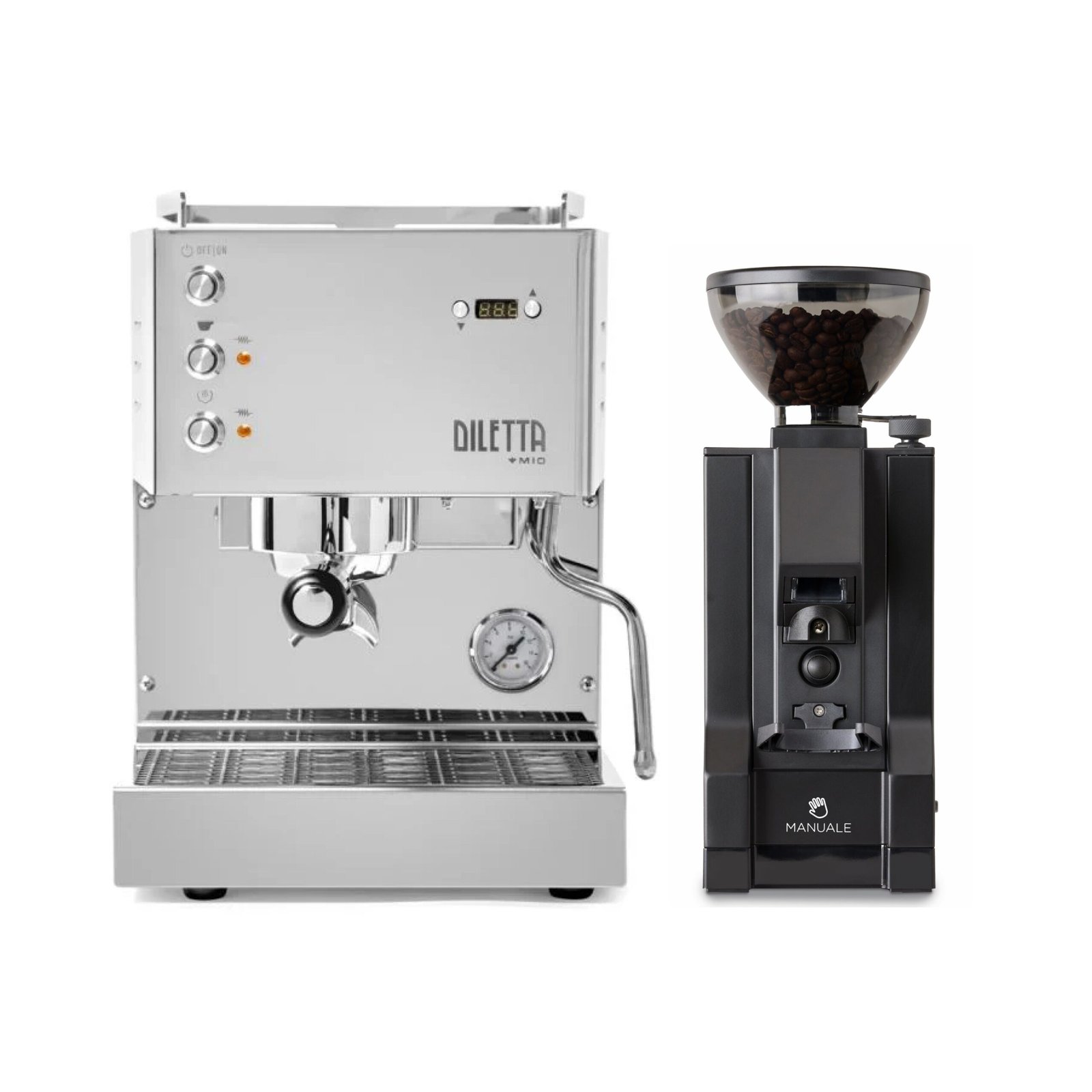 A match made in heaven; the DIletta Mio and Eureka Mignon Notte Bundle is exactly what you need to start out on your home espresso journey. This all-manual espresso combo brings together two handcrafted Italian machines: A modern-classic HX style espresso machine and a compact-yet-capable espresso grinder. With a little hands-on learning, you’ll be grinding, brewing, and steaming like a barista in no time. Bundle includes a Diletta Mio (in your color of choice) and a Eureka Mignon Notte Espresso Grinder.