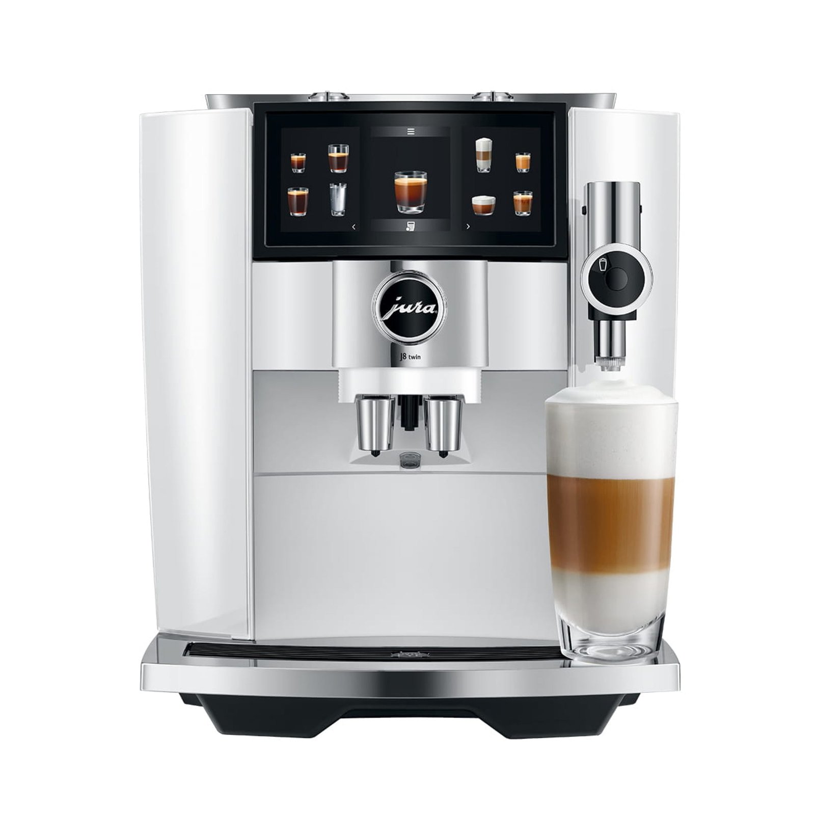 Make coffee your way with the Jura J8 Twin Superautomatic Espresso Machine. Equipped with two 6-ounce hoppers and the ability to blend beans to spec, you can mix and match your preferences for the perfect cup of coffee. Also unique to the J8 line, the Twin features Jura’s sweet foam system, which automatically mixes your favorite syrup into a portion of steamed milk. With over 30 customizable drink options, the J8 Twin streamlines the drink making experience with automatically adjusting spouts and suggested drink options for the cup size. Control is managed through a wide 3-panel touchscreen setup, offering ample room to work through each setting.