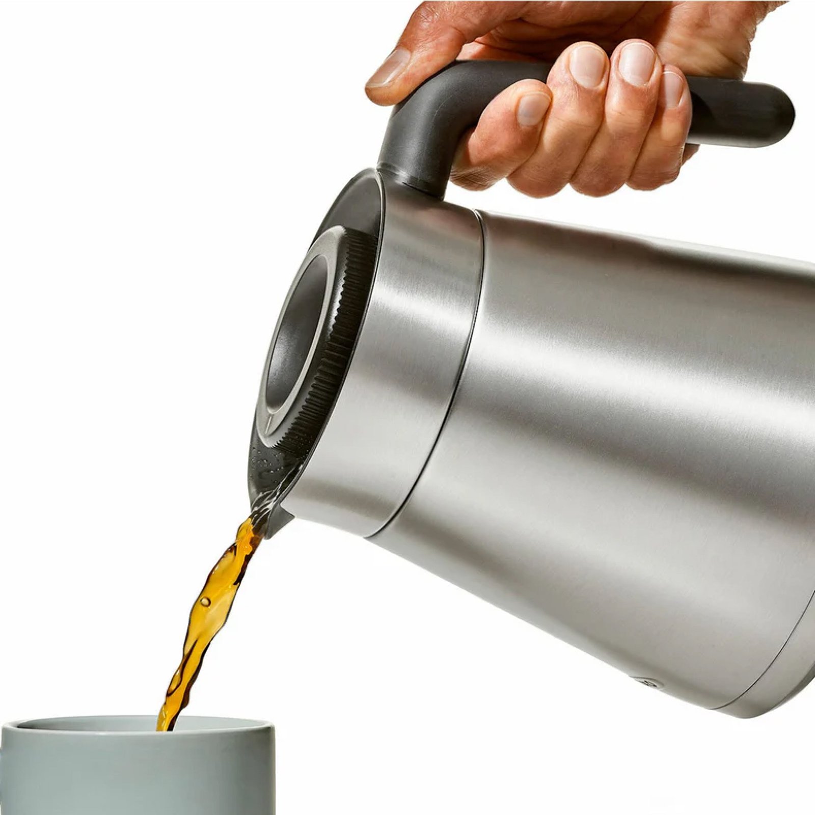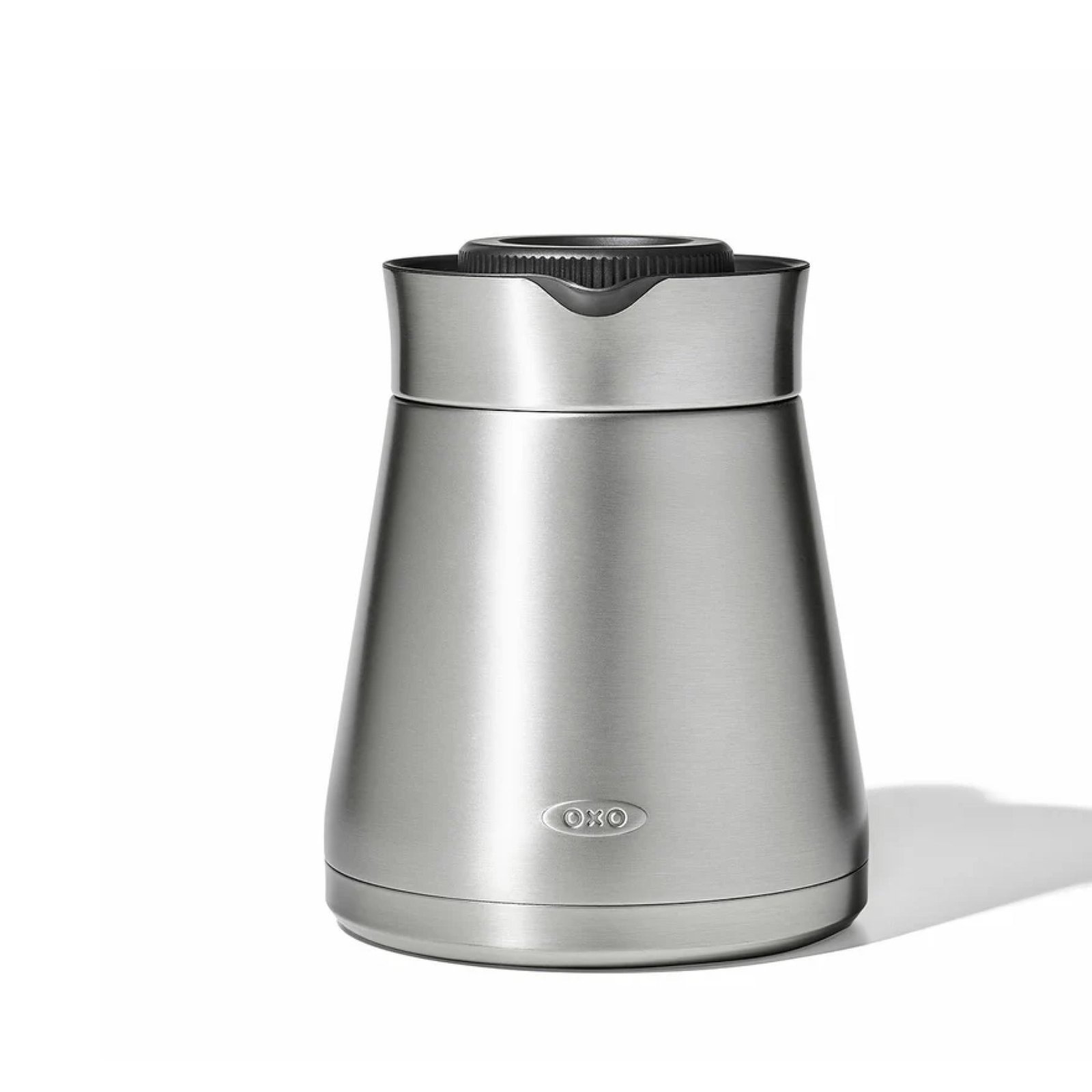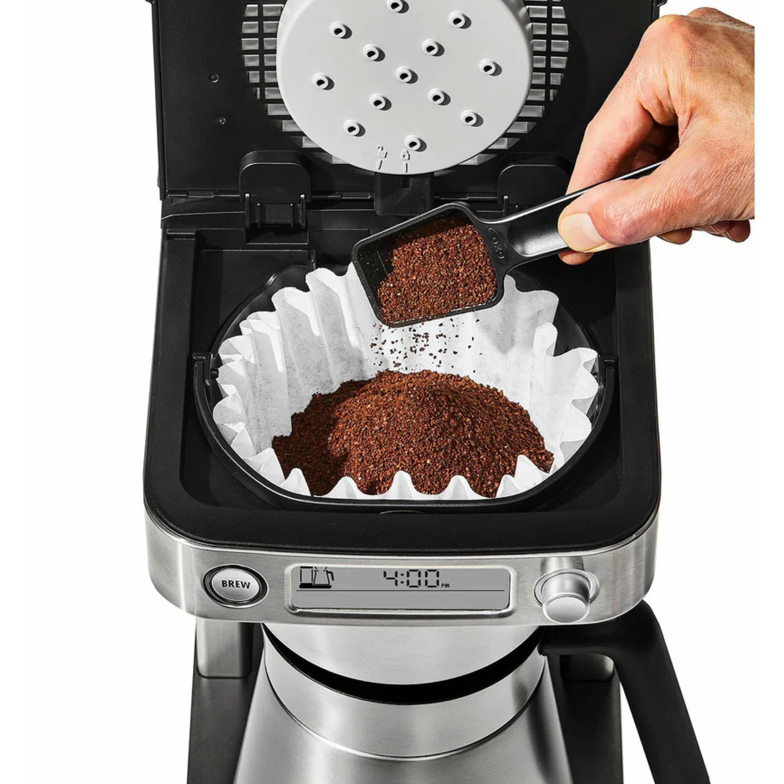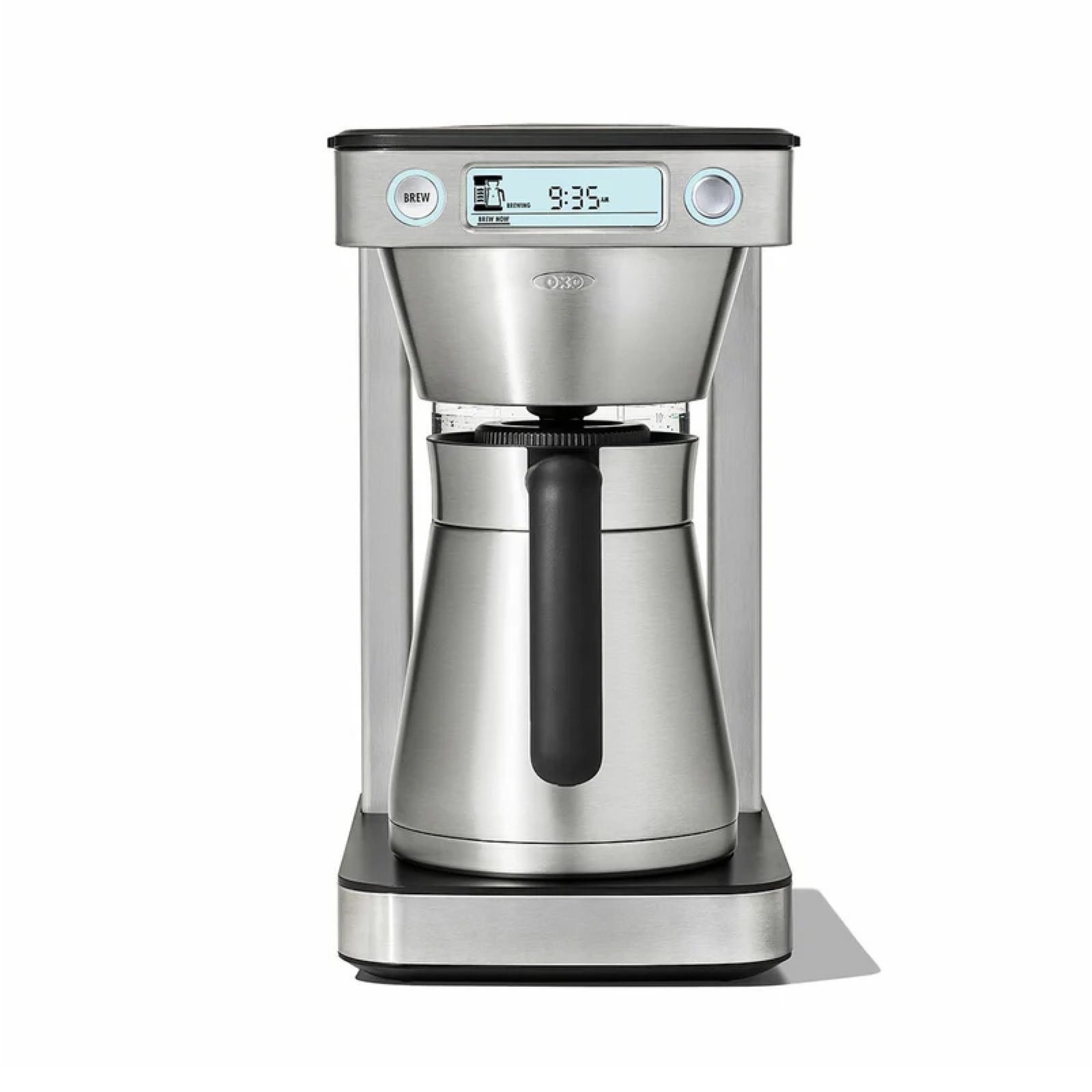 The Oxo 12 Cup Coffee Maker lets you brew for a crowd or just for one with its dual basket options and up to 60-ounce capacity. Designed to brew to SCA Gold Cup parameters for time and temperature, the Oxo 12 Cup makes home drip coffee easy. Simply select you needed brew size, add coffee and water, and place your carafe or mug directly under the brew basket. Other niceties, like a full saturation shower head, auto on programming, and a glass water tank elevate the Oxo 12 cup above and beyond the average drip coffee maker.