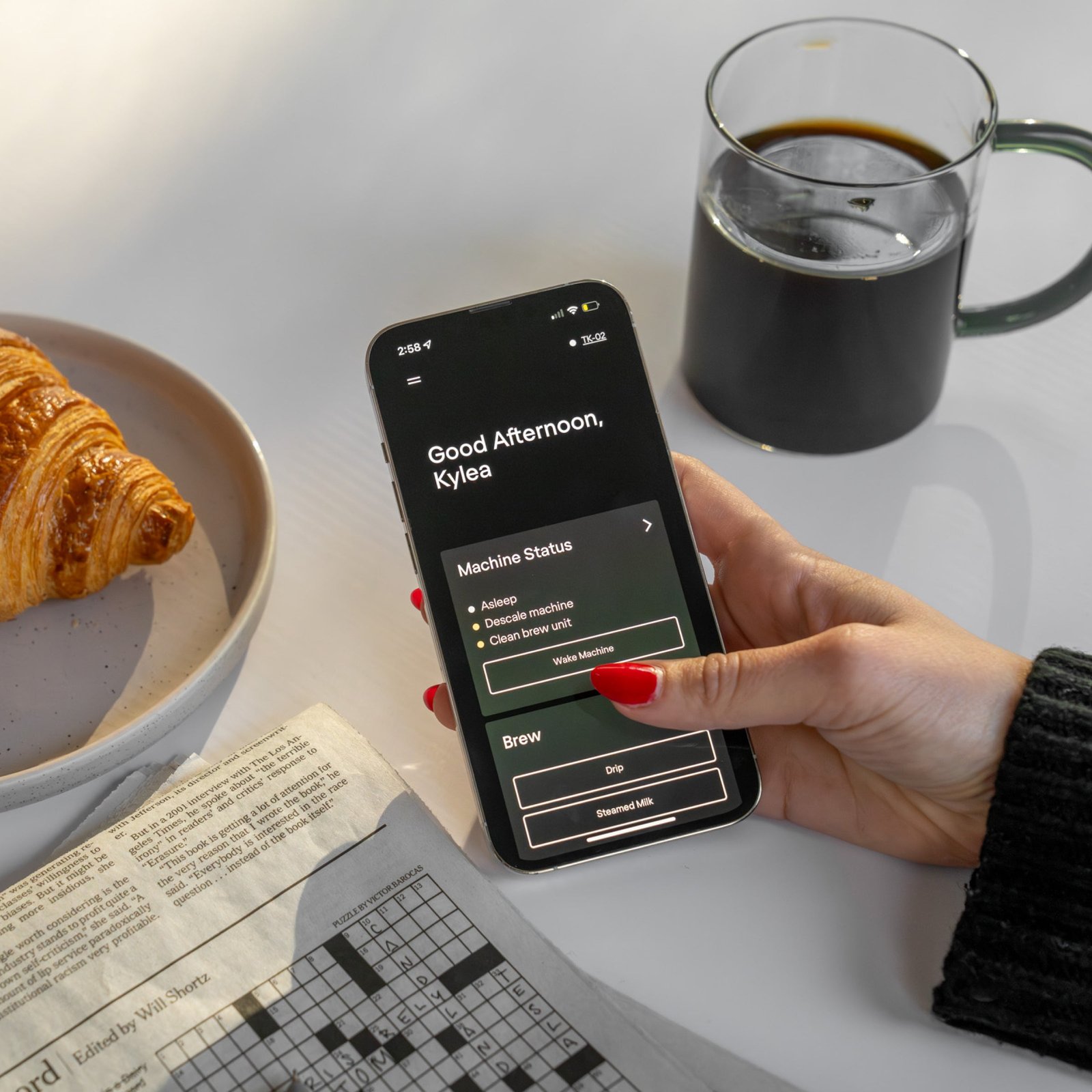 Make the most of your morning coffee with the Terra Kaffe TK-02 Superautomatic Espresso Machine. Minimalist style with more features than many, the TK-02 can brew almost any drink option offered in a coffee shop—right in your own home. Dedicated espresso, cold brew, and low-pressure drip coffee modes set the base for your recipes, which can all be customized and saved. A connected app opens up your own dedicated profile, which can be used anywhere you find a Terra Kaffe machine in the wild. Also found in the app; auto-on wake up scheduling and software updates to unlock more drinks. Milk is managed with a removable milk carafe, and features an adjustable frothing dial to find your best frothing texture with any milk type. All of this is controlled by the TK-02’s high-contrast touchscreen, which offers helpful text based instructions to get you your coffee with ease.